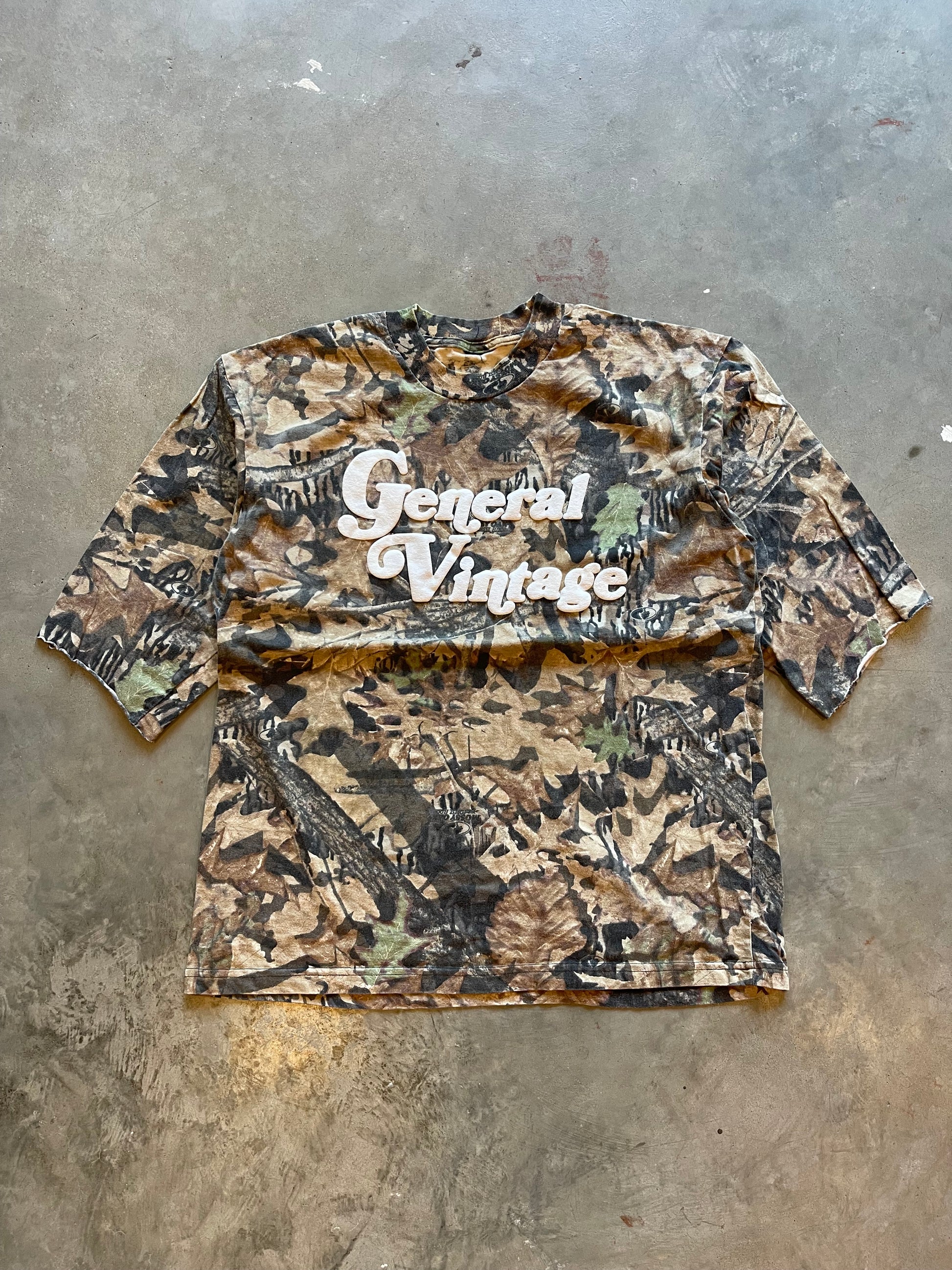 General Vintage Camo Puff Print Cut Sleeves Shirt (L)