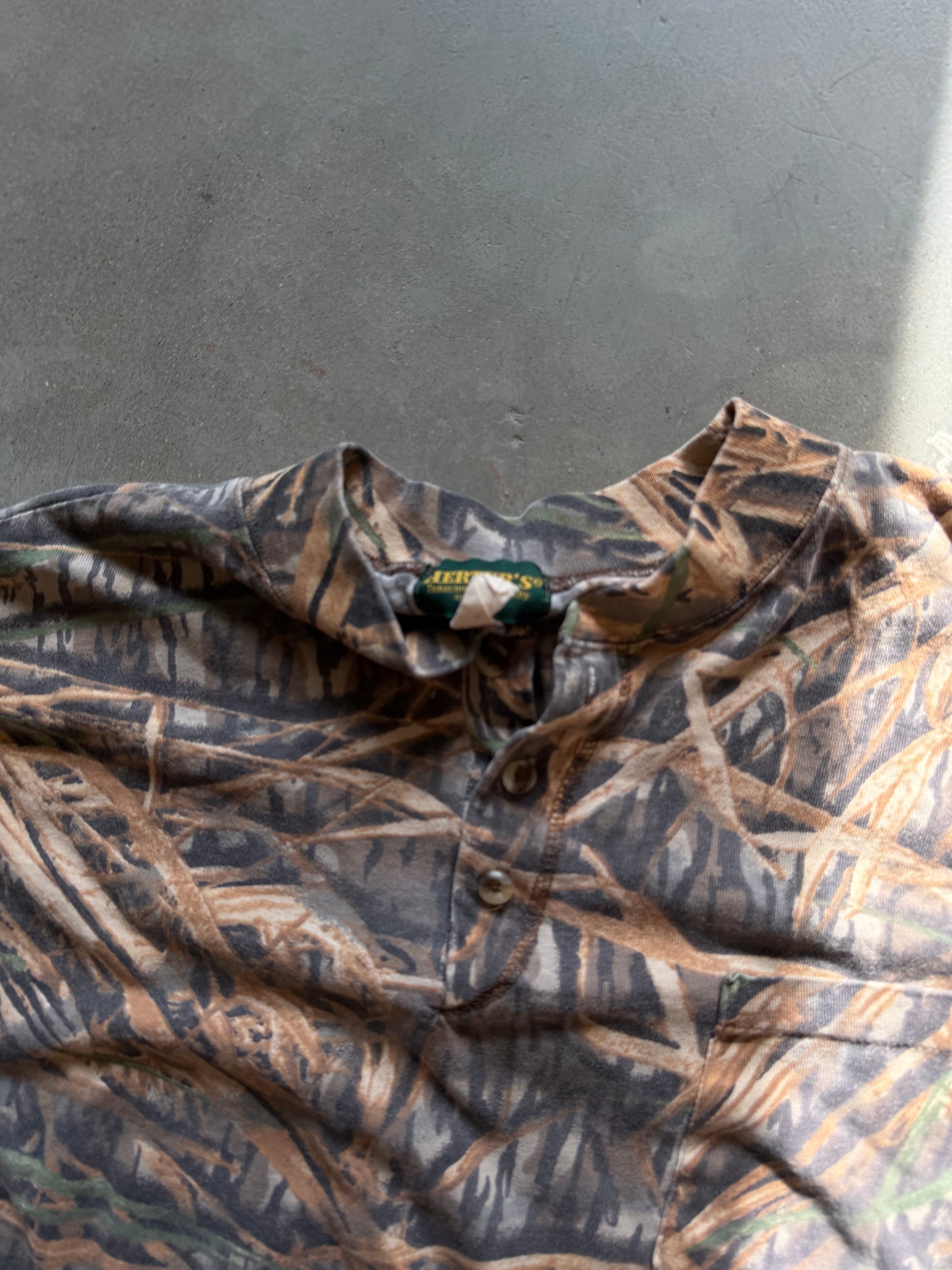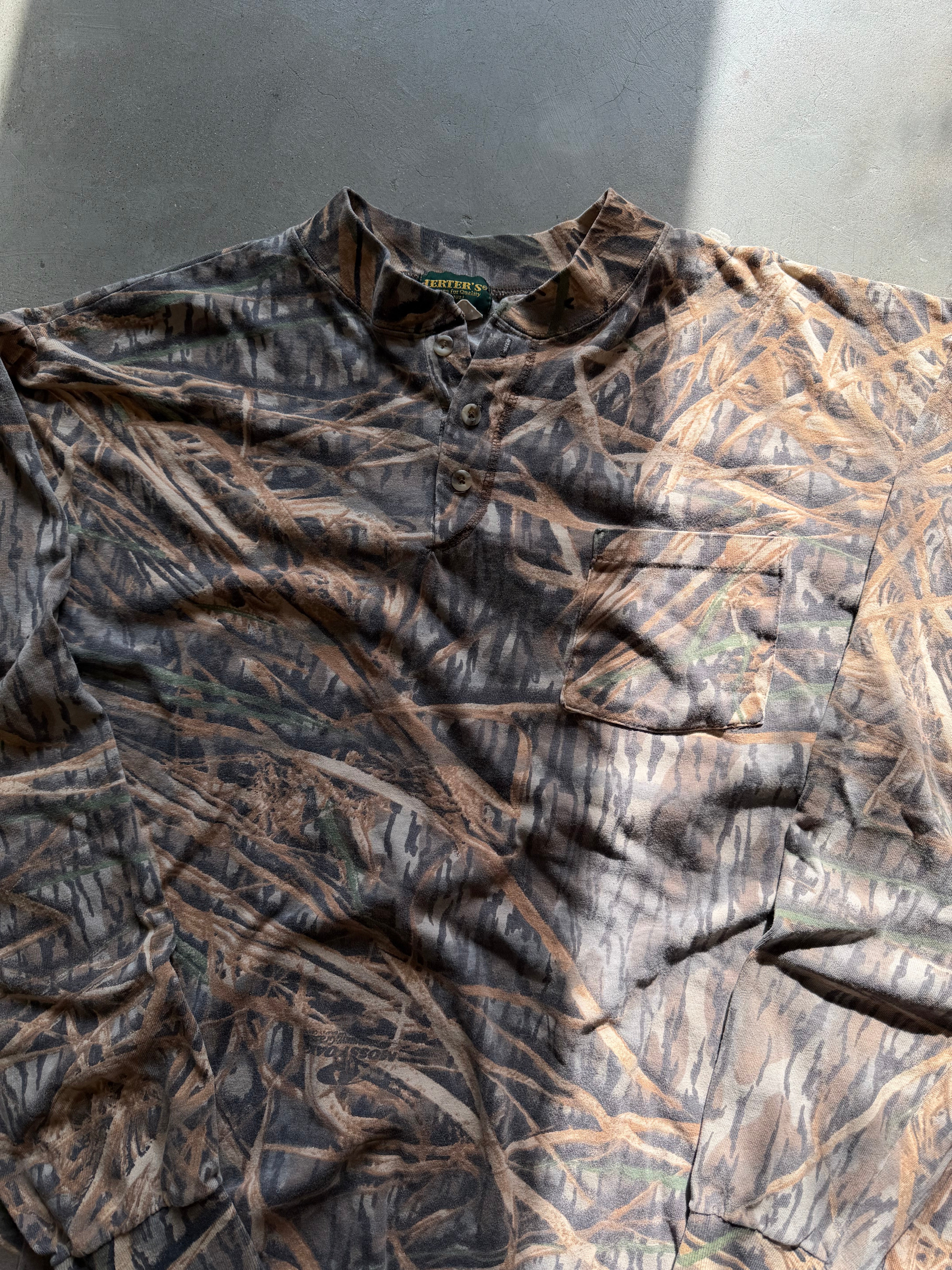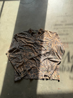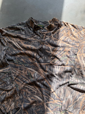 Vintage Mossy Oak Shadow Grass Camo Henley Shirt (XL)