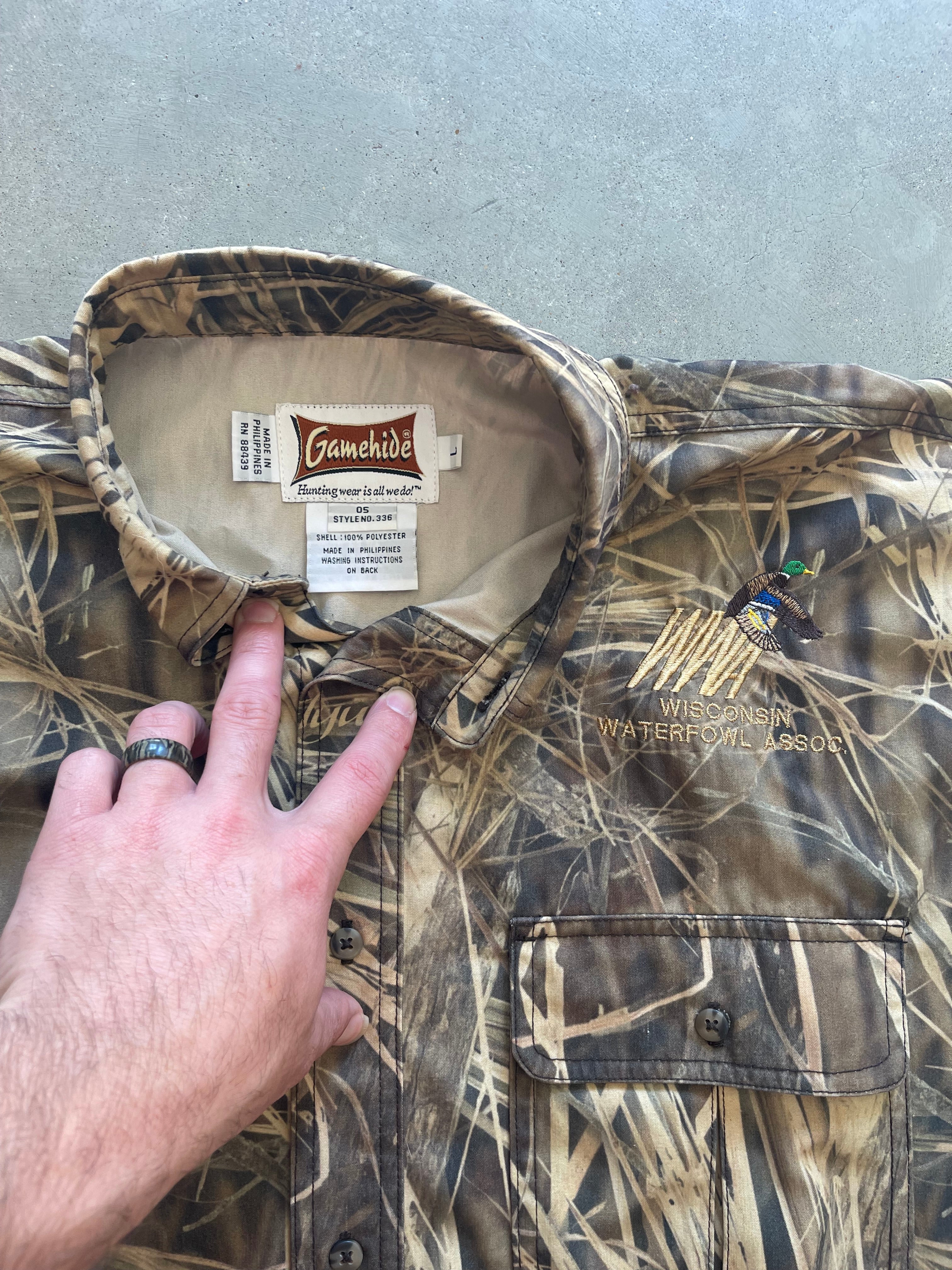Vintage Wisconsin Waterfowl Association Camo Button Up Shirt (L)